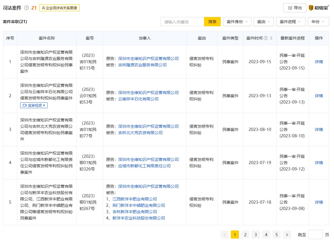 隨后,全維公司以此為“武器”,自2020年起,針對(duì)廣東、湖北、四川、福建、山東等地的二十余家復(fù)合肥生產(chǎn)企業(yè)發(fā)起了密集的專利侵權(quán)訴訟,索賠金額從100萬元到1000萬元不等,甚至要求企業(yè)拆除生產(chǎn)設(shè)備。