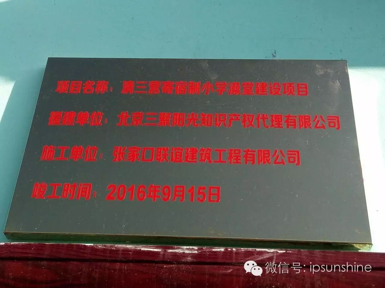 今年“三聚陽光”再次參與到這一愛心活動中。為了貫徹國家知識產權局在崇禮區(qū)開展扶貧支教工作的方針政策,通過中華全國代理人協(xié)會組織協(xié)調,協(xié)會成員三聚陽光知識產權代理有限公司出資,于2016年支持援建崇禮區(qū)清三營鄉(xiāng)寄宿制小學澡堂建設工程?,F(xiàn)澡堂已竣工等待驗收,特邀您與我們一起踏上10月清三營之行。