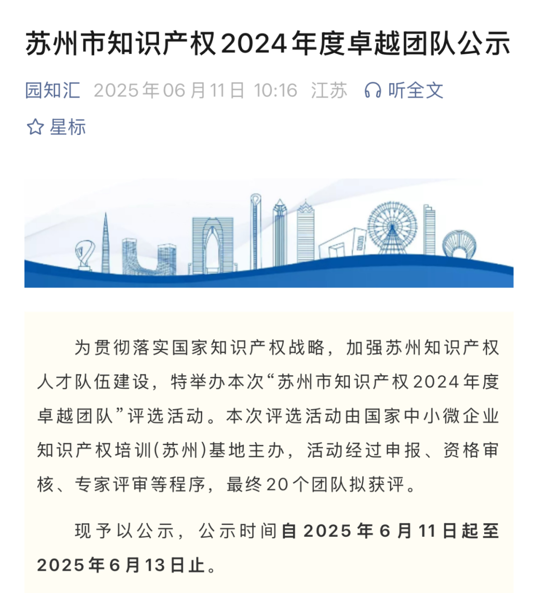 近日,“蘇州市2024年度知識產(chǎn)權(quán)卓越團隊”榜單公布,三聚陽光集團蘇州公司服務(wù)團隊憑借出色的專業(yè)能力和對區(qū)域創(chuàng)新發(fā)展的貢獻成功入選。