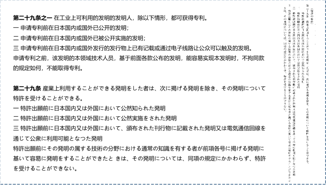 由于此前已略有提及“現(xiàn)有技術(shù)”,本期我們主要圍繞日本,對(duì)該國(guó)的新穎性認(rèn)定原則進(jìn)行簡(jiǎn)單介紹。