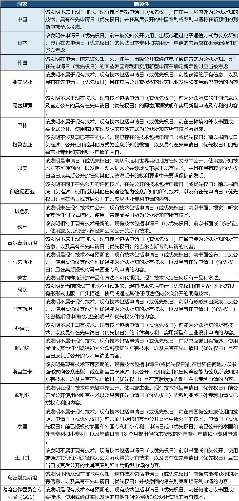 附:各國(guó)對(duì)“新穎性”的定義(亞洲篇)
